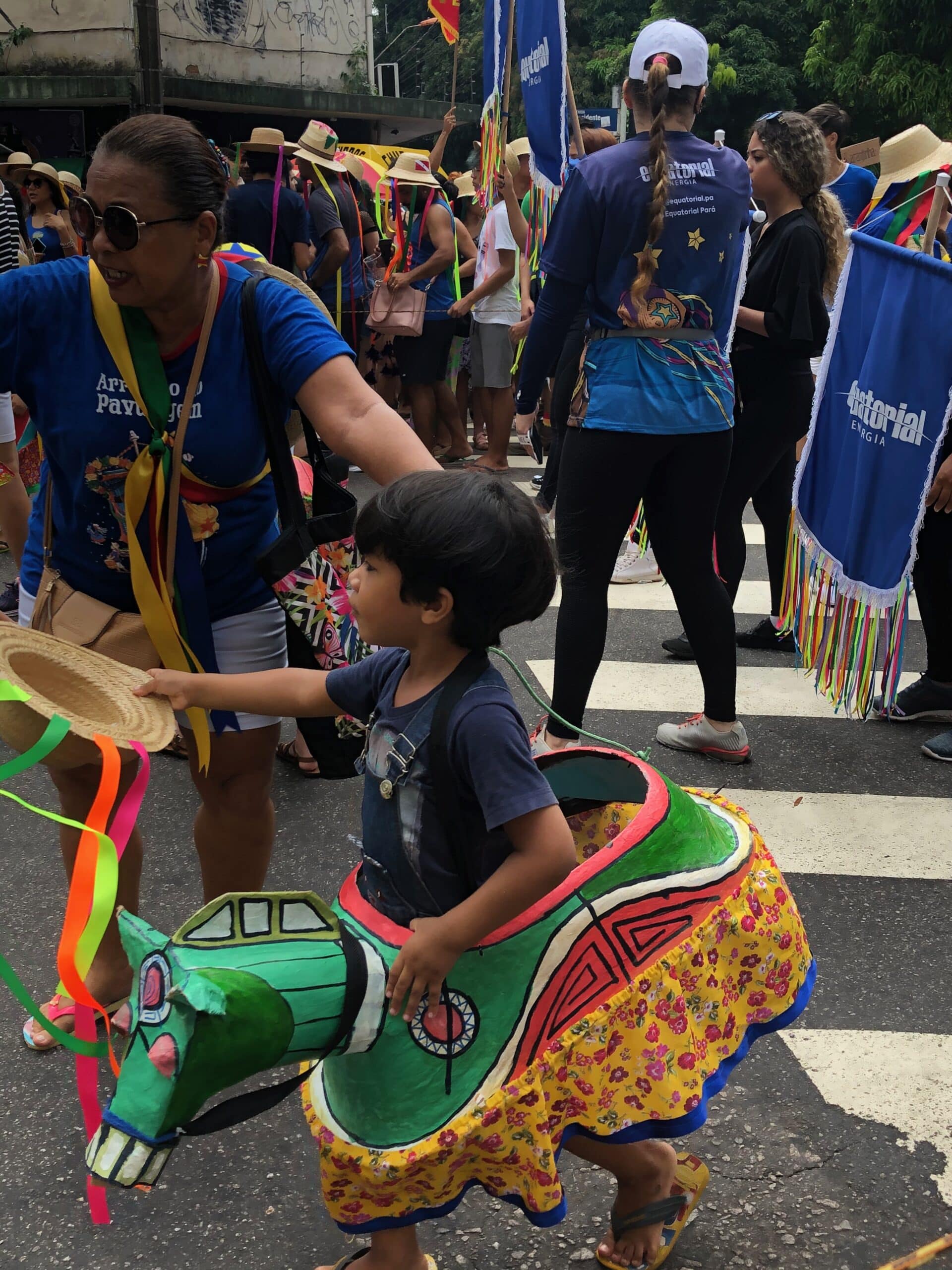 Este desfile gigante, que mistura dança, música e efígies de personagens humanos, animais reais ou fantásticos, é um sincretismo que celebra os santos de junho, bem como a vida, a morte e a ressurreição de um boi.