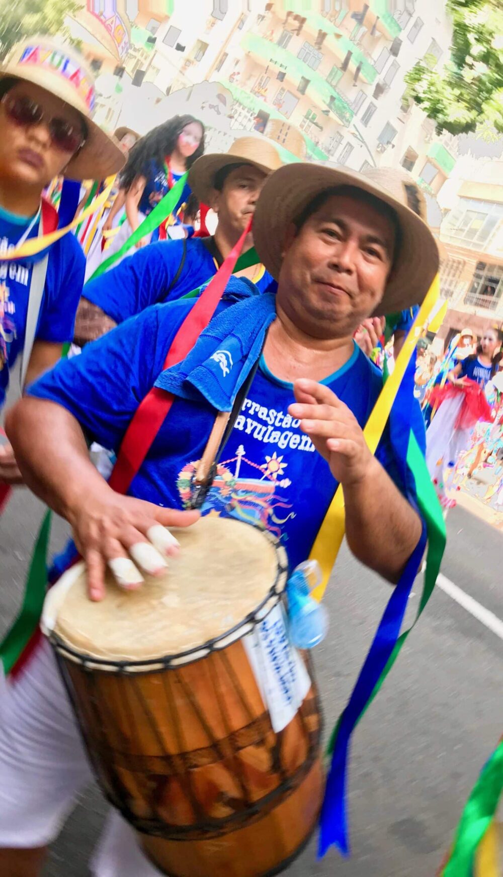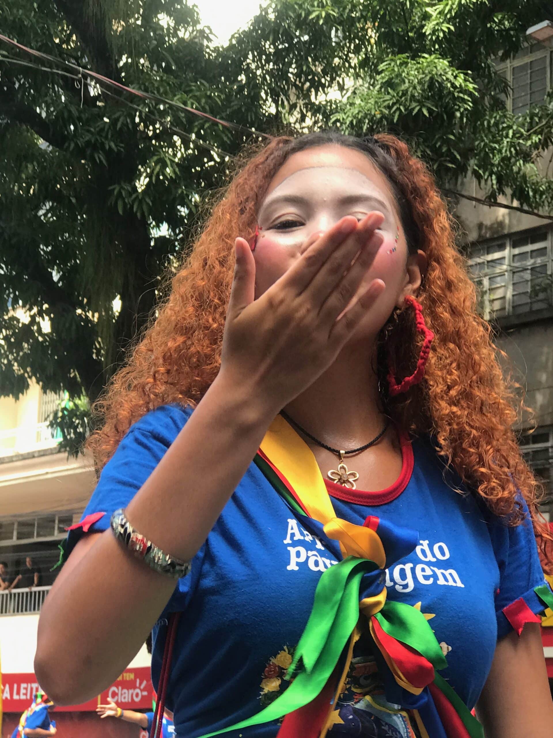 Entouré par le cordão, chaque groupe accélère le pas : danseurs, festivaliers – incluant dans cette vidéo, des personnes en fauteuil roulant qui participent au premier défilé du 12 juin –, titans sur échasse, musiciens suivent la cadence.